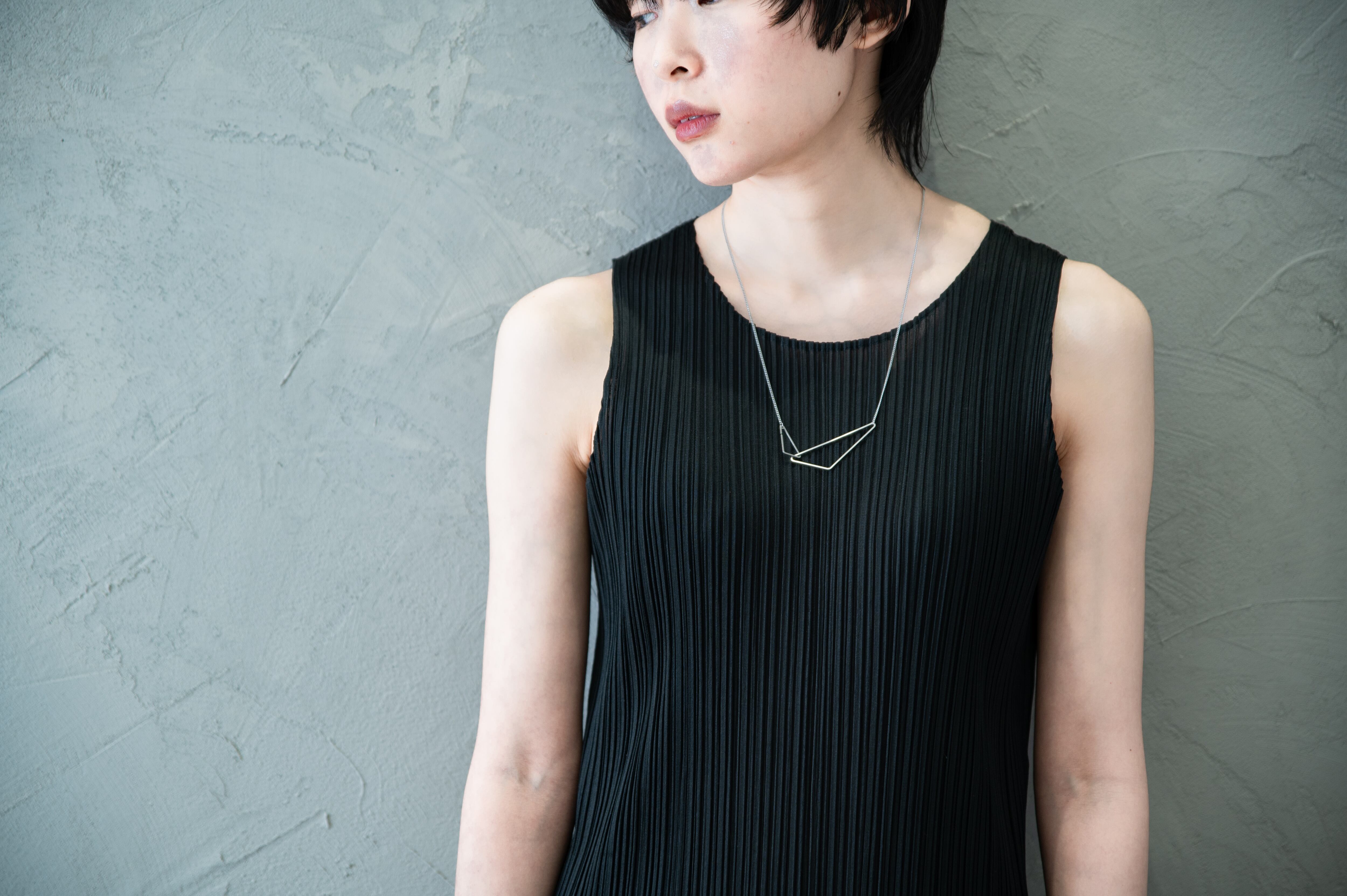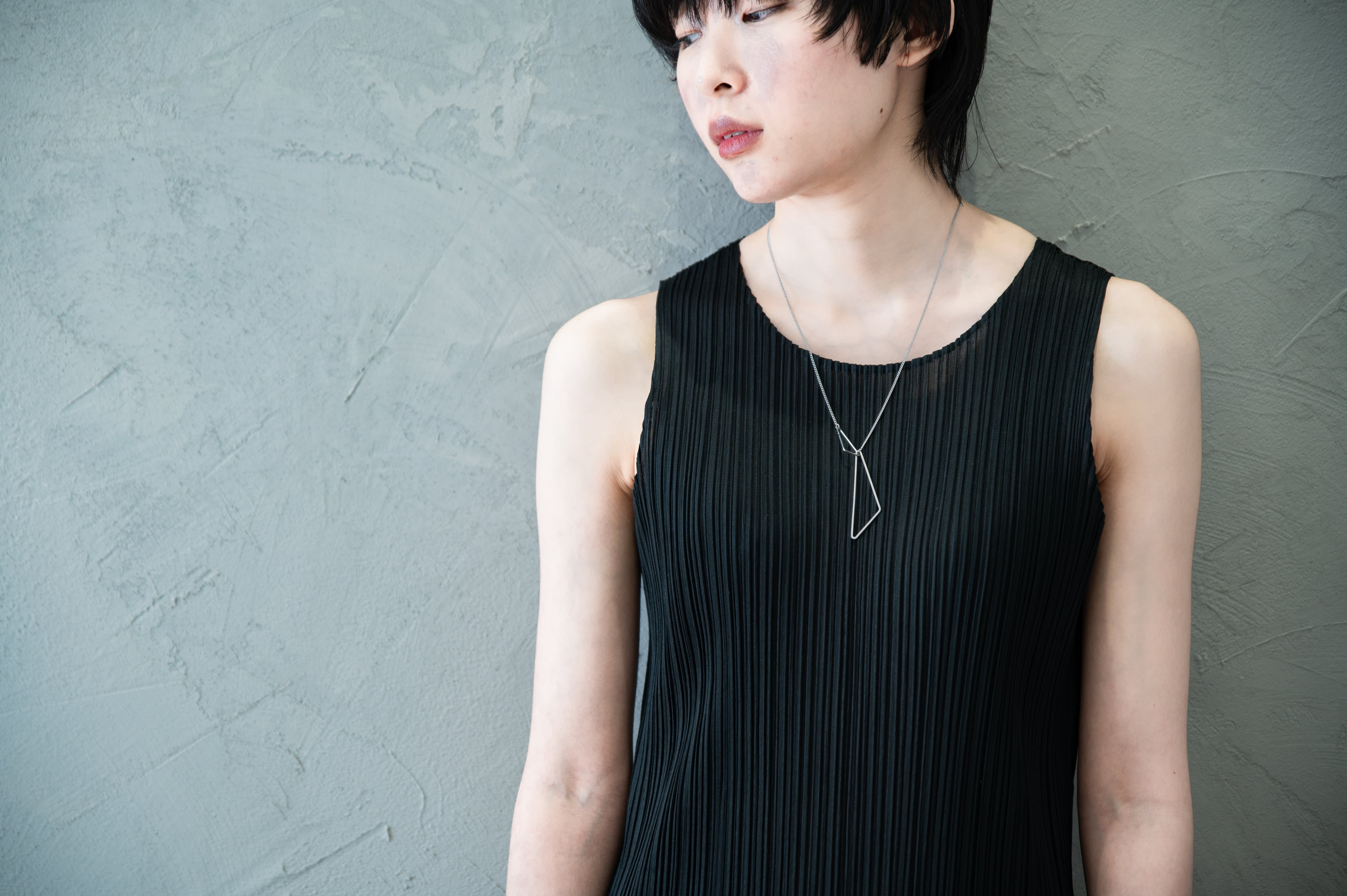 大きめのロングネックレスながら3gの軽さで一日中着けていても重さを感じません。モチーフを前側で留めることで手を後ろにまわさずに着脱することができます。