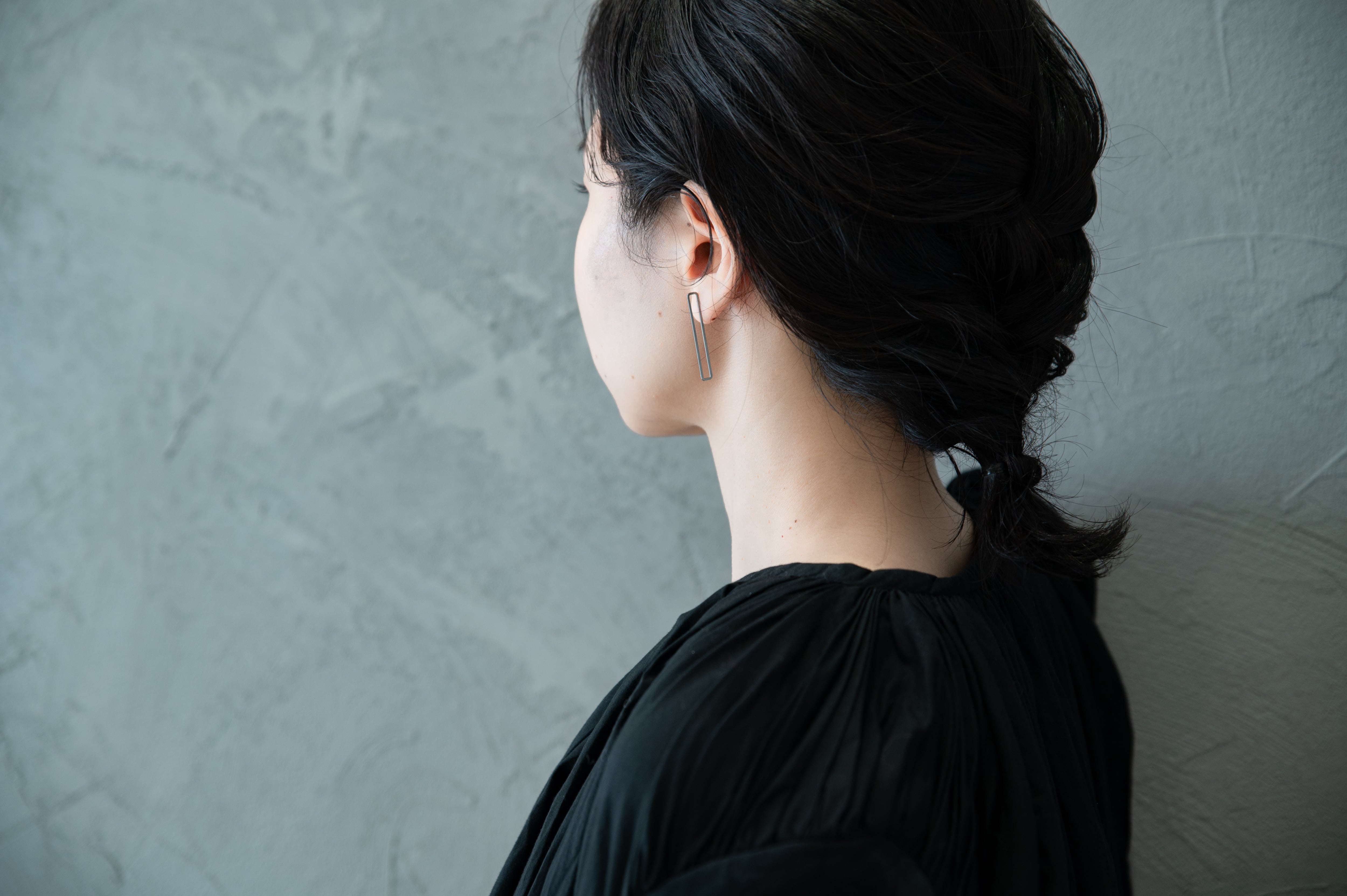 大きめのシルエットを軽やかに形どる繊細な線は「主張」ではなく「気配」を演出し、耳元をさりげなく飾ります。